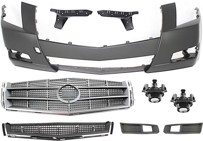 Replacement 9-Piece Kit Grille Chrome Shell with Textured Black Insert, Includes (1) Bumper, (4) Bumper End, (2) Fog Light, (1) Grille, and (1) Valance