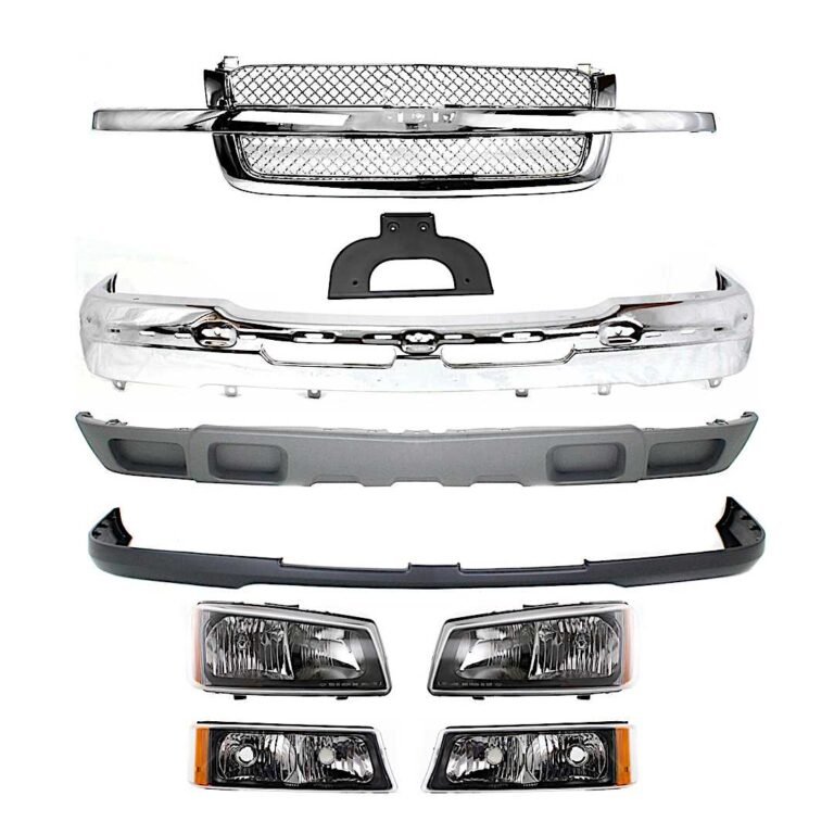 Replacement 9-Piece Kit, Front Bumper, Chrome, Includes (1) Bumper, (1) Bumper Cover, (1) Grille, (2) Headlight, (1) License Plate Bracket, (2) Turn Signal Light, and (1) Valance