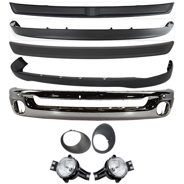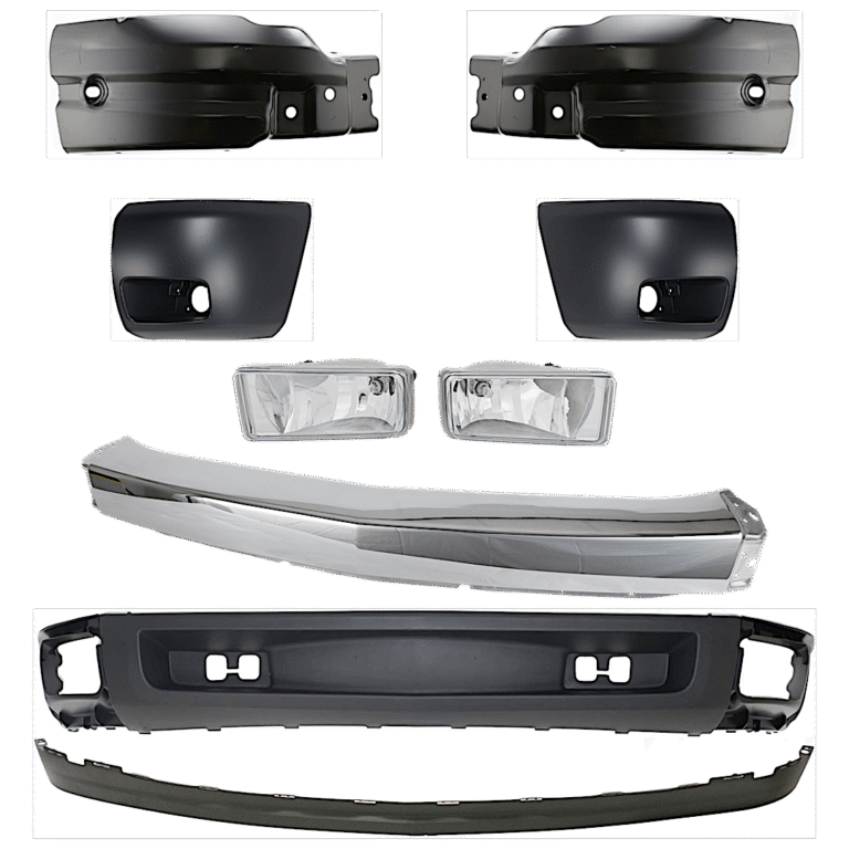 Replacement 9-Piece Kit, Bumper, Chrome, Includes (1) Bumper, (4) Bumper End, (2) Fog Light, and (2) Valance