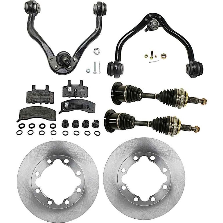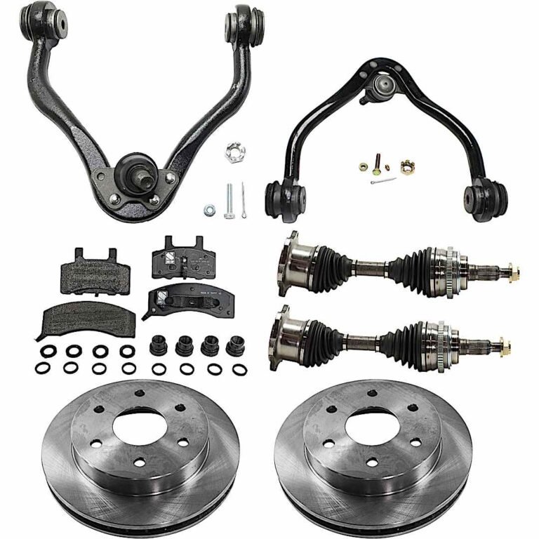 JC Whitney 8-Piece Kit Front, Driver and Passenger Side Axle Assembly with Brake Discs, Brake Pad Set, and Control Arms, Four Wheel Drive