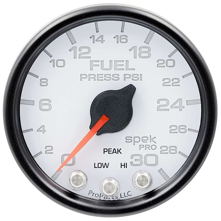 Autometer P316128 Spek Series Gauge, Fuel Press, 2 1/16in. 30Psi, Stepper Motor W/Peak & Warn, Wht/Blk.