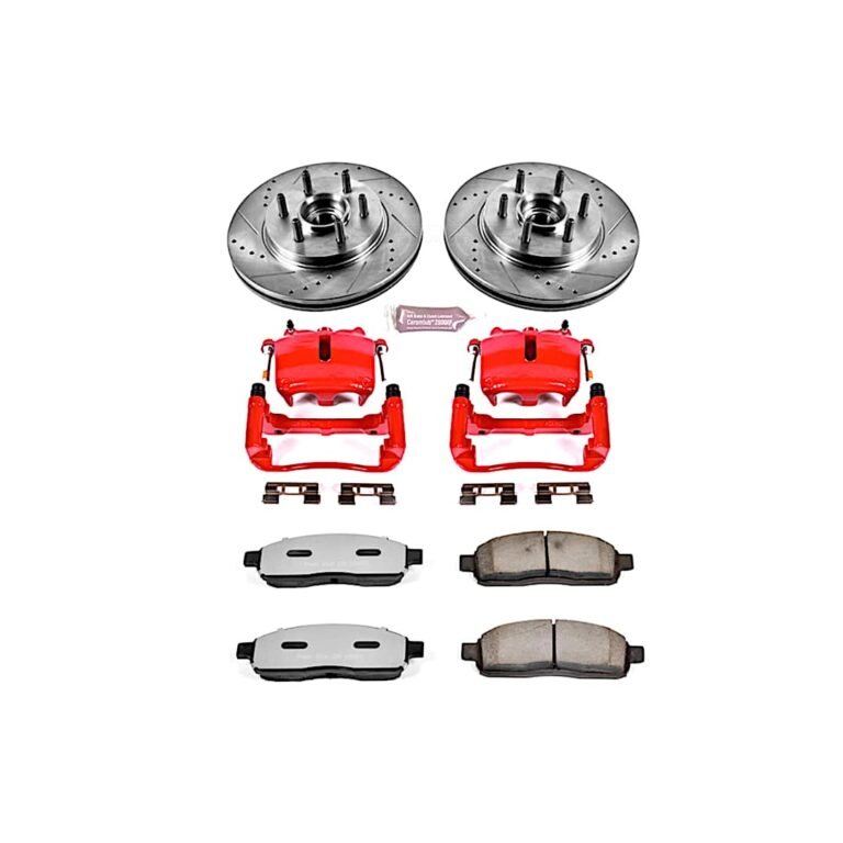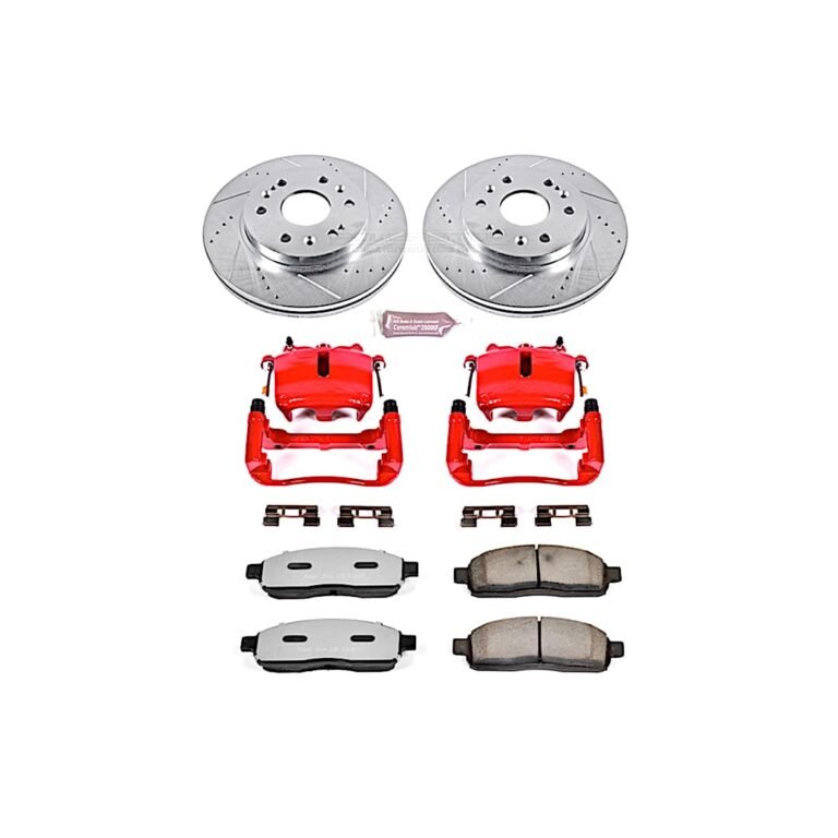 Powerstop 2-Wheel Set Power Stop® KC1943A Front Z23 Daily Carbon-Fiber Ceramic Brake Pad, Drilled & Slotted Rotor and Caliper Kit