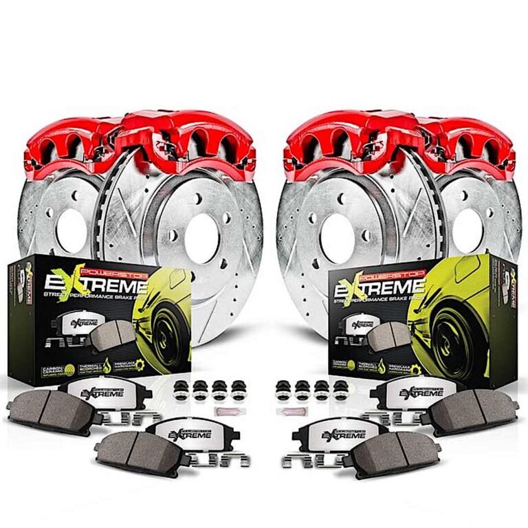 Powerstop KC6819-36 Rear Brake Disc and Caliper Kit, Cross-drilled and Slotted 5 Lugs 342 mm Red Powdercoat Caliper, Carbon Fiber Ceramic, Z36 Extreme Truck And Tow