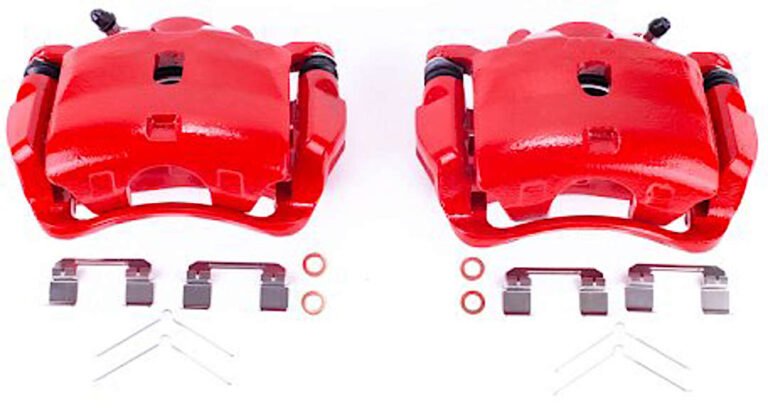 Powerstop KC7175 Front Brake Disc and Caliper Kit, Cross-drilled and Slotted 5 Lugs 339.8 mm Red Powdercoat Caliper, Carbon Fiber Ceramic, Z23 Evolution Sport Series