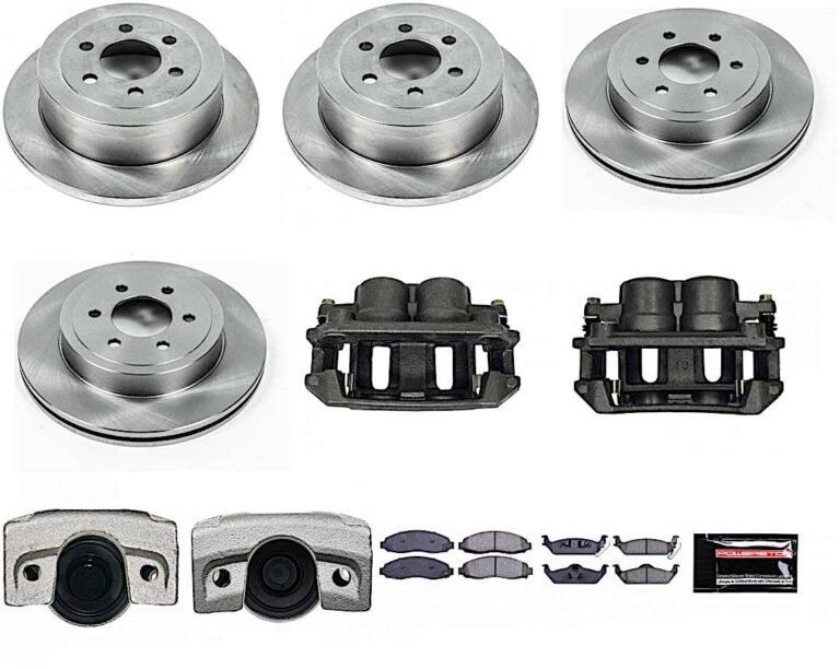 Powerstop KCOE1944A 4-Wheel Set Front and Rear OE Stock Replacement Low-Dust Ceramic Brake Pad, Rotor and Caliper Kit, 6 Lug Models