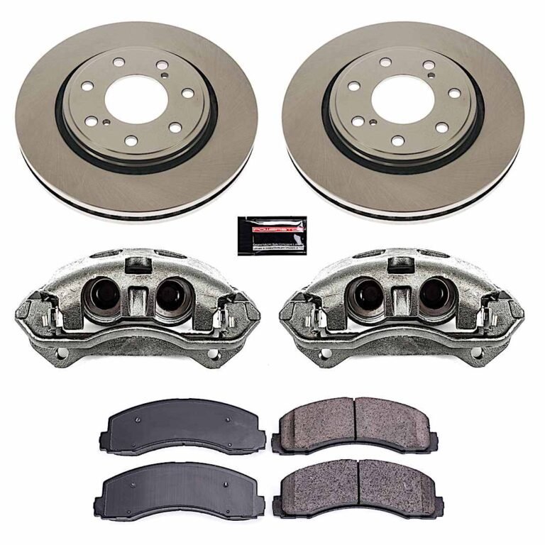 Powerstop KCOE5874A Front and Rear Brake Disc and Caliper Kit, Plain Surface 6 Lugs 312.1 mm Natural Caliper, Ceramic, Z17 OE Replacement