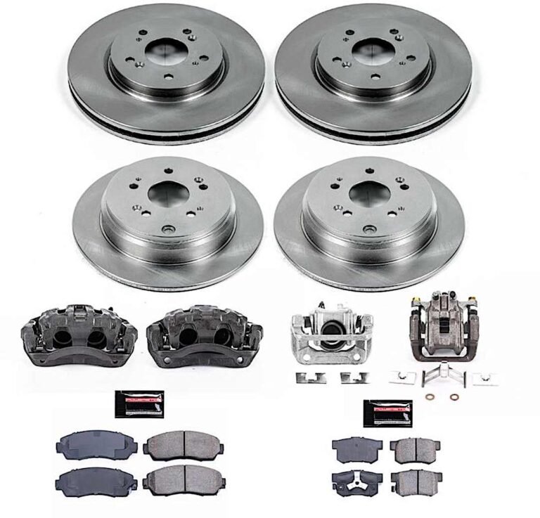 Powerstop KCOE6480 4-Wheel Set Front and Rear Brake Disc and Caliper Kit, Plain Surface, Ceramic, 5 Lugs, 11.65 in. Front/11.06 in. Rear Disc Diameter