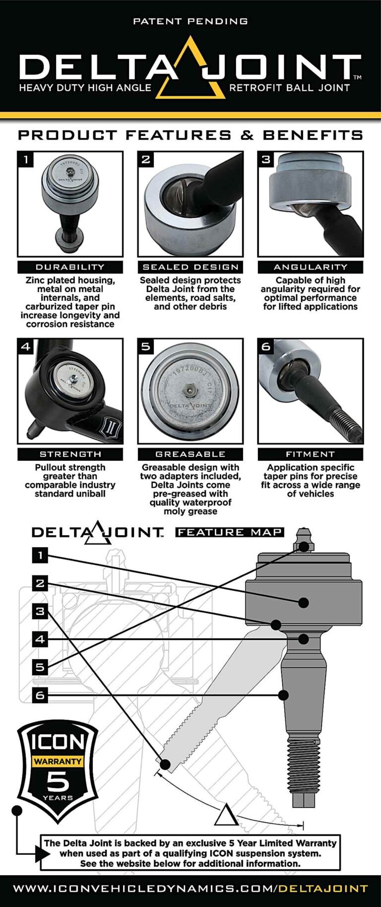 ICON Vehicle Dynamics ICNSUS58452DJ Front, Driver and Passenger Side Tubular Upper Control Arms w/ Delta Joint PRO