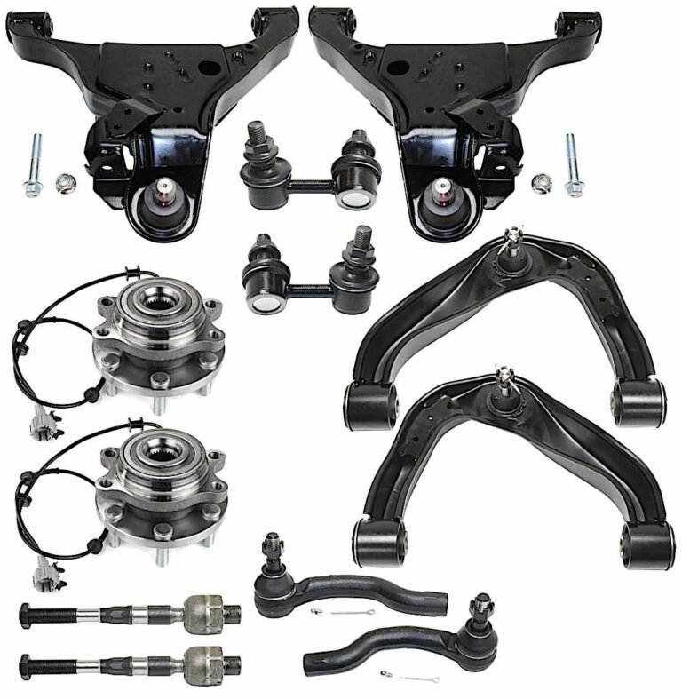 TrueDrive 12-Piece Kit Front, Driver and Passenger Side, Upper and Lower Control Arm Kit, Includes (4) Control Arm, (2) Sway Bar Link, (4) Tie Rod End, and (2) Wheel Hub