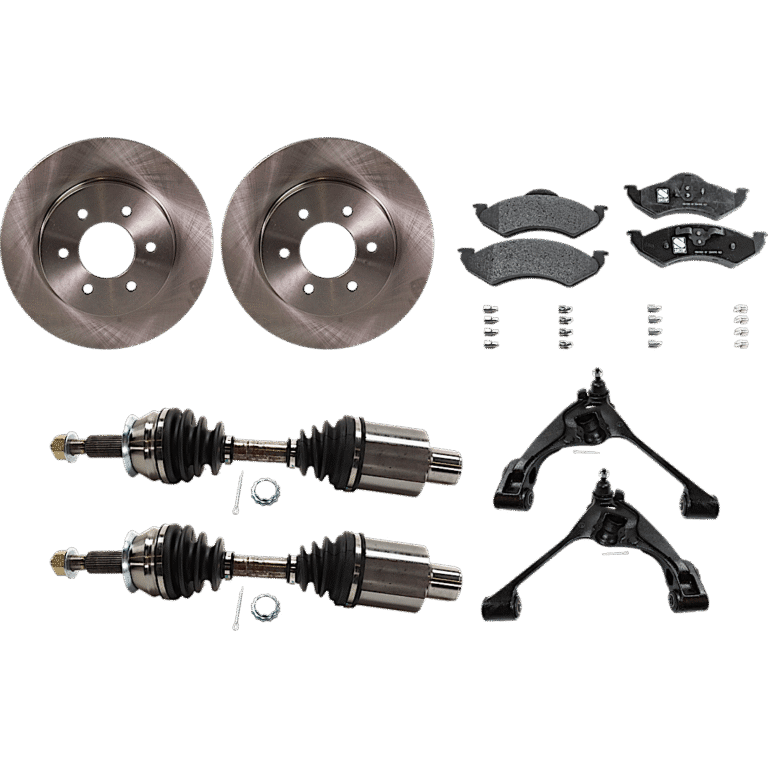 TrueDrive 7-Piece Kit Front, Driver and Passenger Side, Lower Control Arm, 4WD, Includes (2) Axle Assembly, (2) Brake Disc, (1) Brake Pad Set, and (2) Control Arm