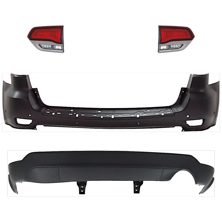 Replacement 4-Piece Kit Rear, Upper and Lower Upper – Primed, Lower – Textured Bumper Cover, Includes (2) Bumper Cover and (2) Tail Light