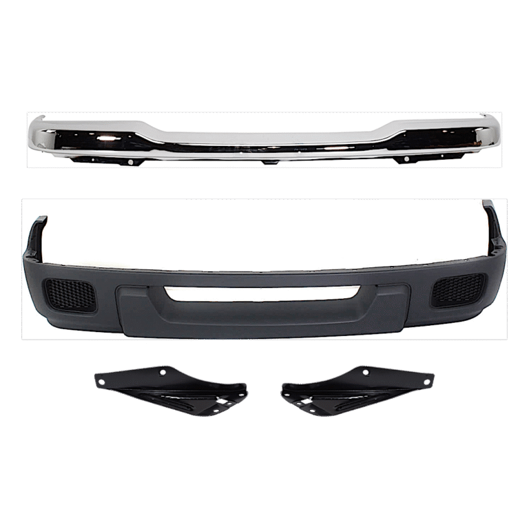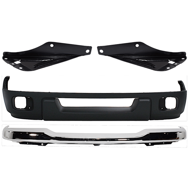 Replacement 4-Piece Kit, Front Bumper, Chrome, Includes (1) Bumper, (2) Bumper Bracket, and (1) Valance