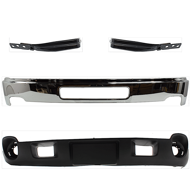 Replacement 4-Piece Kit, Front, Lower Bumper, Chrome, Includes (1) Bumper, (2) Bumper Bracket, and (1) Bumper Cover
