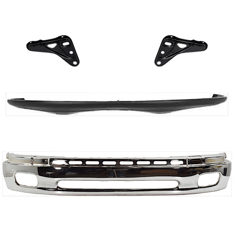 Replacement 4-Piece Kit, Front, Driver and Passenger Side Bumper, Chrome, Includes (1) Bumper, (2) Bumper Bracket, and (1) Valance