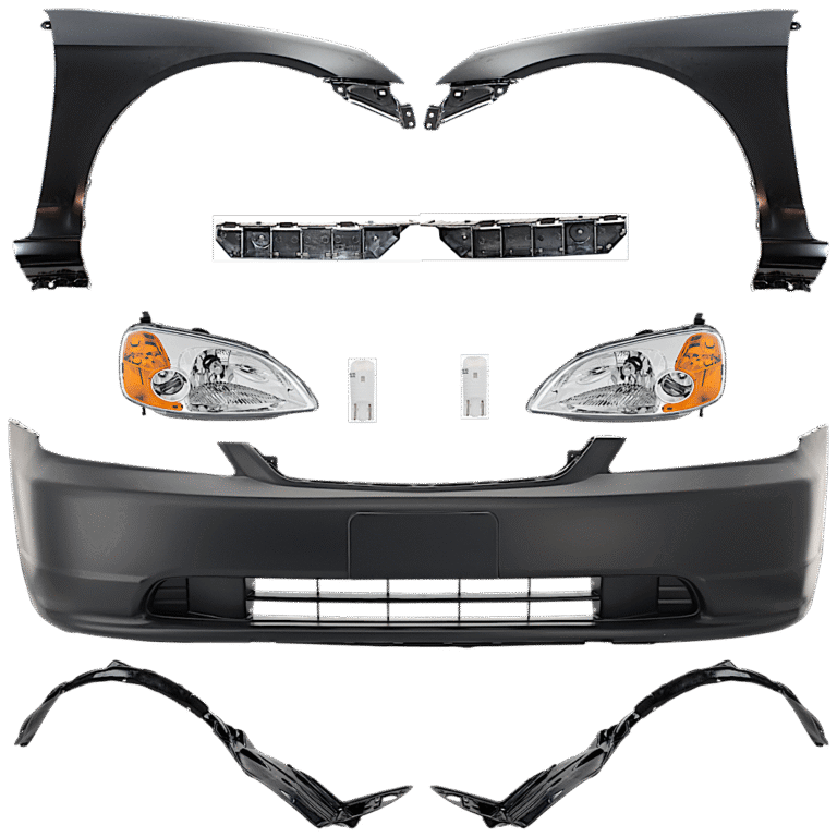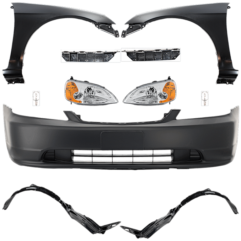 Replacement 11-Piece Kit Driver and Passenger Side Incandescent Headlight, Includes (2) Bumper Bracket, (1) Bumper Cover, (2) Fender, (2) Fender Liner, (2) Headlight, and (2) Light Bulb