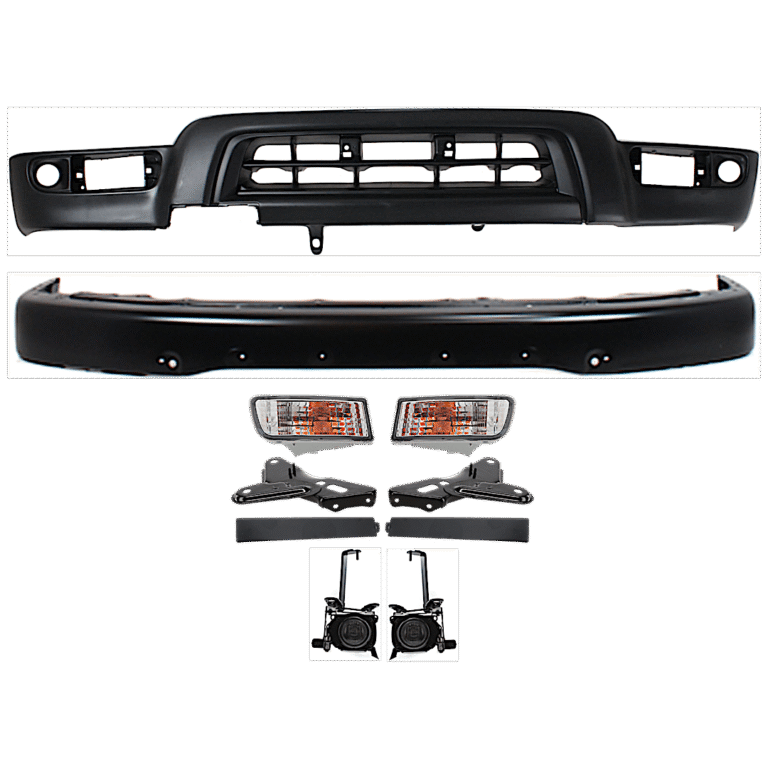 Replacement 10-Piece Kit, Front, Driver and Passenger Side Halogen Fog Light, With bulb(s), Includes (1) Bumper, (2) Grille Assembly, (2) Fog Light, (2) Turn Signal Light, (2) Bumper Bracket and (1) Valance
