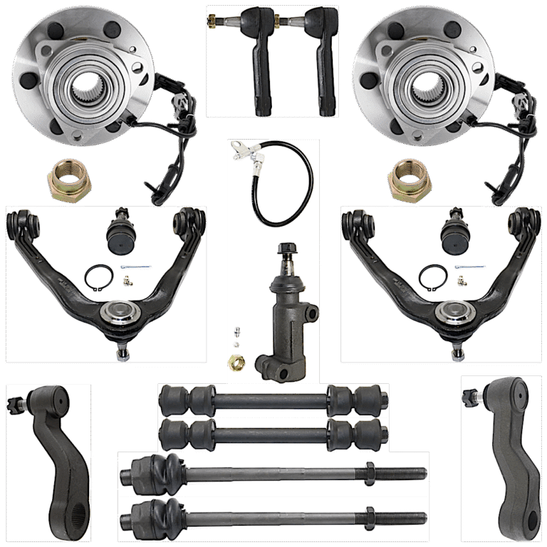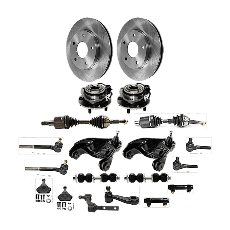 TrueDrive 2-Wheel Set Front, Driver and Passenger Side Wheel Hub with Ball Joints, Control Arms, Idler Arm, Idler Arm Bracket, Pitman Arm, Sway Bar Links, and Tie Rod Ends