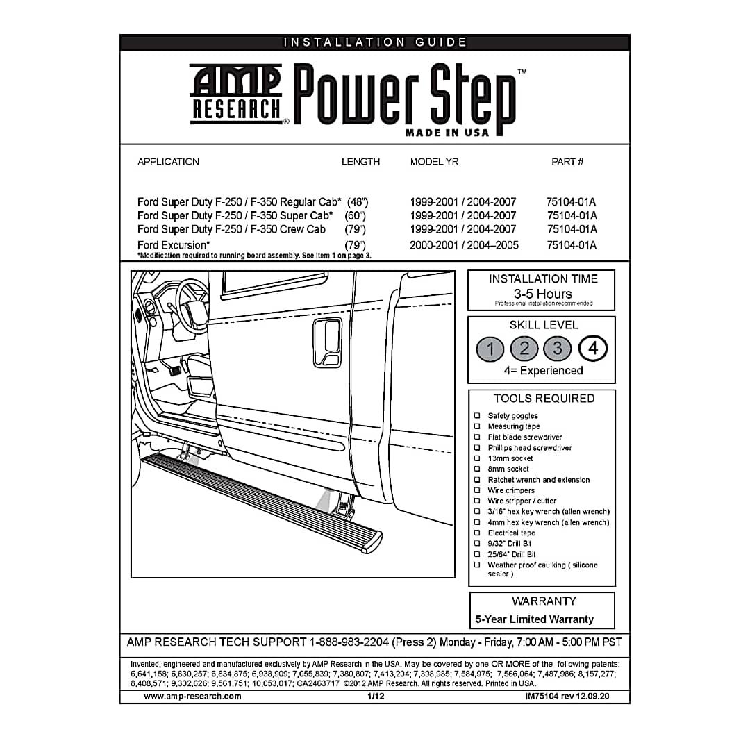 5-year or 60000-mile AMP Research limited warranty |