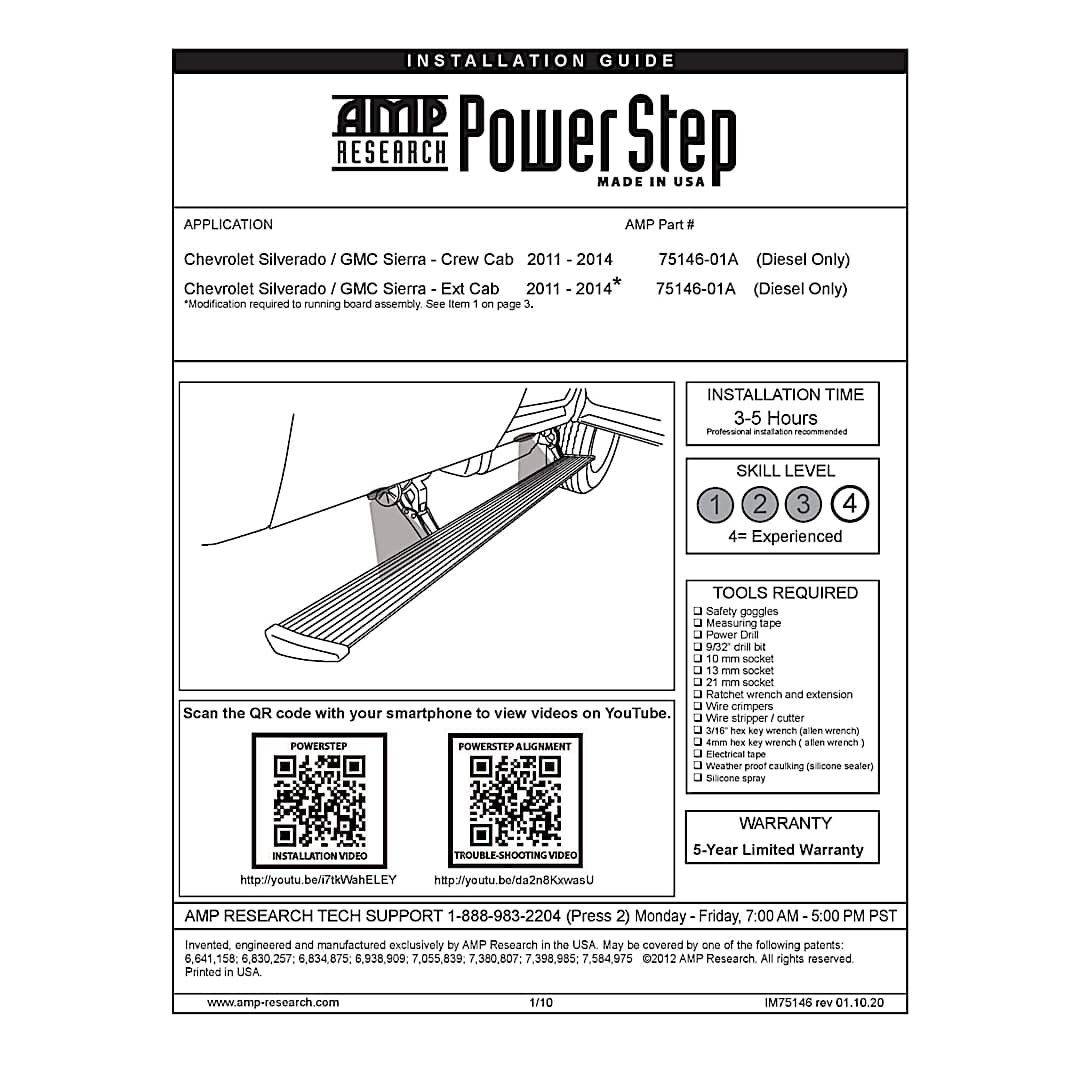 5-year or 60000-mile AMP Research limited warranty