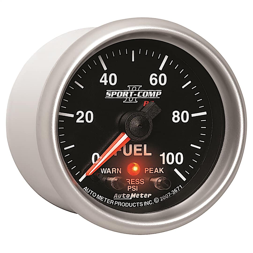 Autometer 3671 Sport-Comp II Series Gauge, Fuel Press, 2 1/16in. 100Psi, Digital Stpr Mtr W/Pk & Wrn.