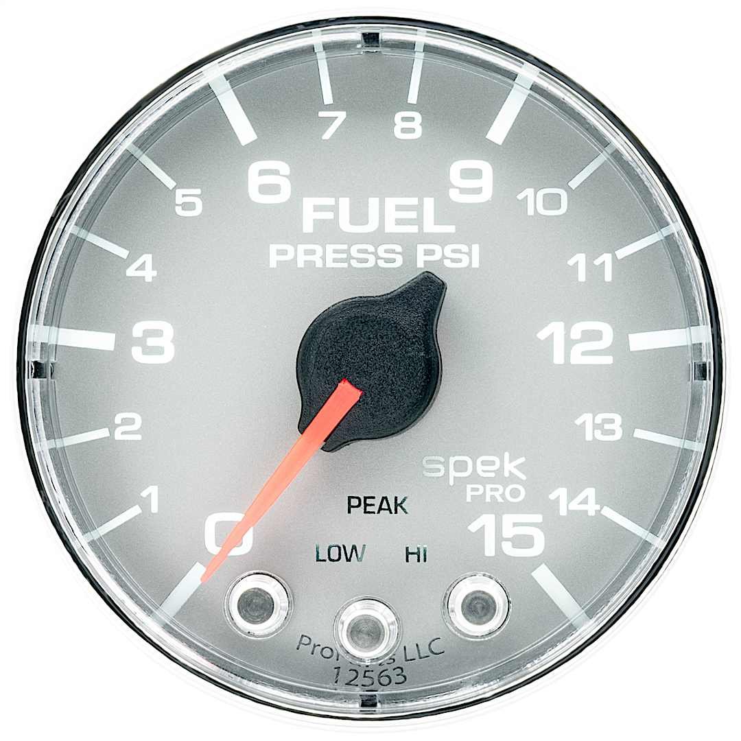 Autometer P315218 Spek Series Gauge, Fuel Press, 2 1/16in. 15Psi, Stepper Motor W/Peak & Warn, Slvr/Chrm.