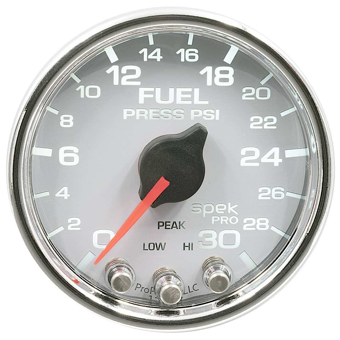 Autometer P31611 Spek Series Gauge, Fuel Press, 2 1/16in. 30Psi, Stepper Motor W/Peak & Warn, Wht/Chrm.