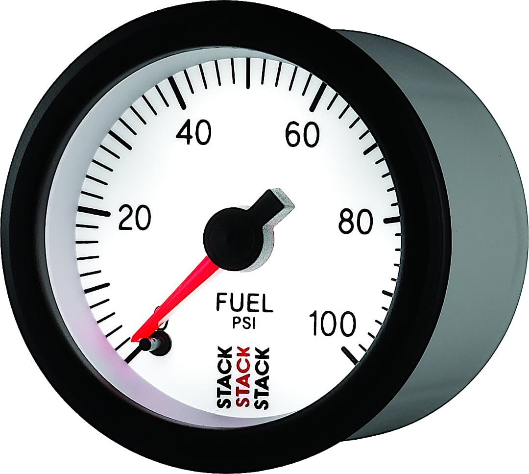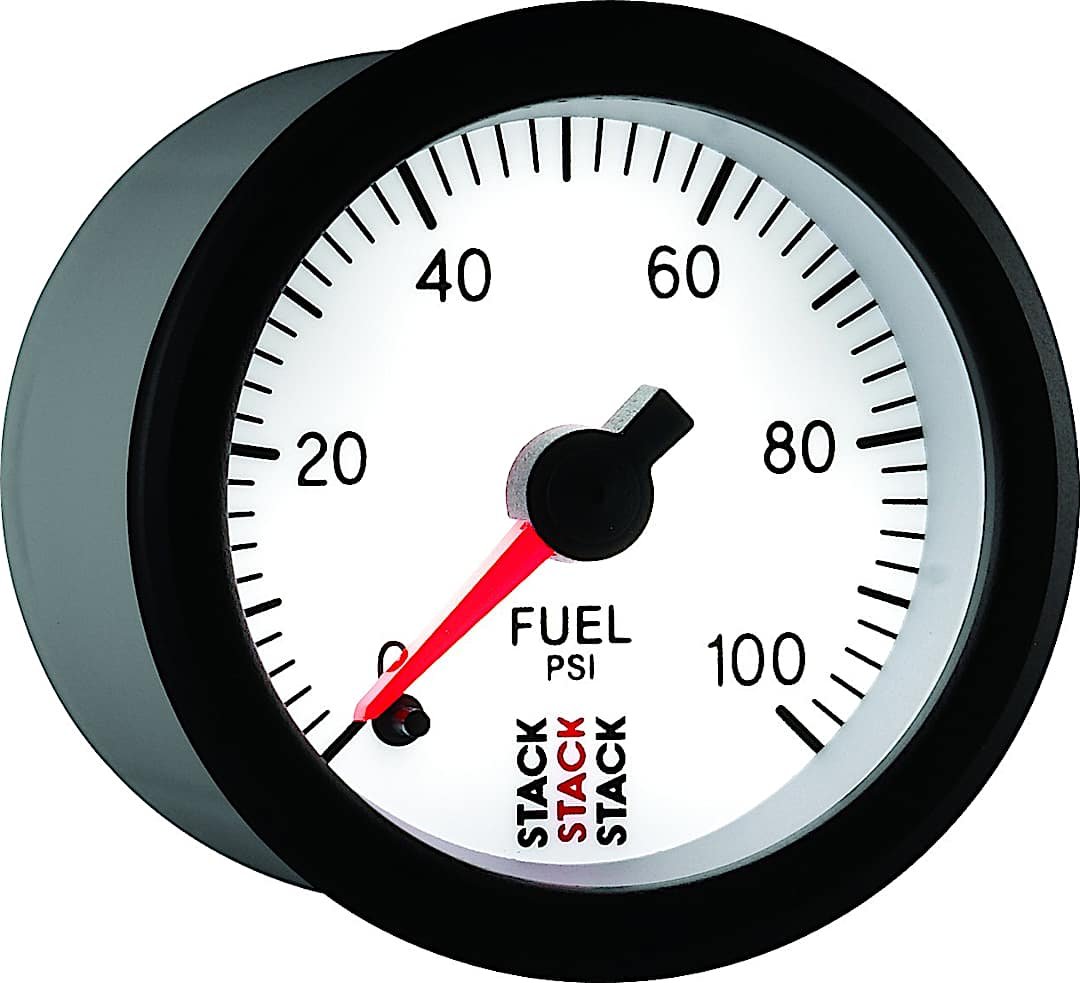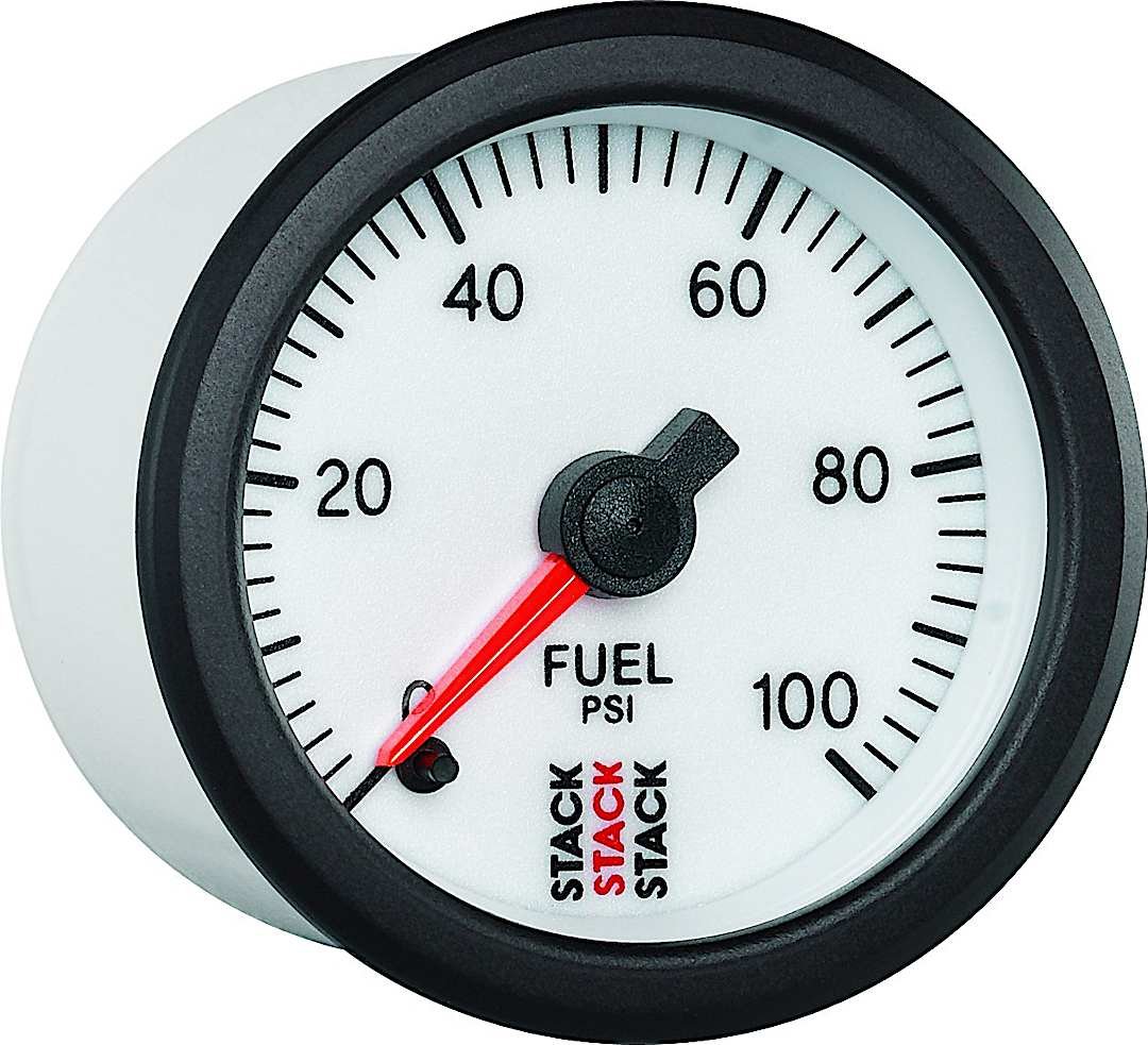 Autometer ST3356 Stack Series Gauge, Fuel Press, Pro Stepper Motor, 52Mm, Wht, 0-100Psi, 1/8in. Nptf Male