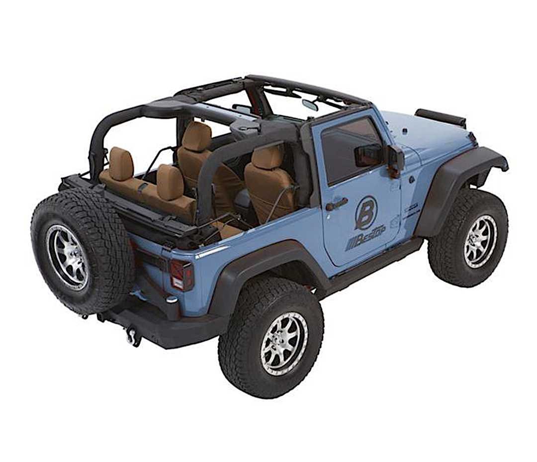 The Trektop Glide is a state-of-the-art soft-top with the superior Bestop fastback styling. The innovative folding frame design lets the Trektop Glide function like a convertible top, simply slide out the zipper-less window panels and fold the top behind the rear seat for a full open-air ride. For full coverage, the Trektop Glide is fast and simple to close.