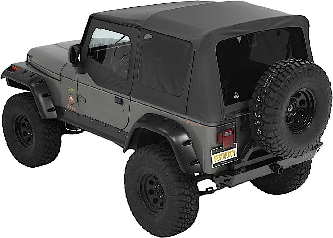 Supertop Complete Top With OEM Style Hardware. Bestop’s Factory Style Soft top complete with factory style door surrounds, factory style windshield channel, sailcloth fabric, and tinted windows. PLUS, a Top Arch to support the fabric, quick release bow knuckles for tool less top removal, and a new adjustable plate to maintain top tautness. High grade premium fabric. High Strength steel and OEM composite plastic hardware. Fold back sunroof feature, standard, except on YJ model. Multiple door kits available. Full Soft Top kit available for TJD applications. Two Year Warranty.