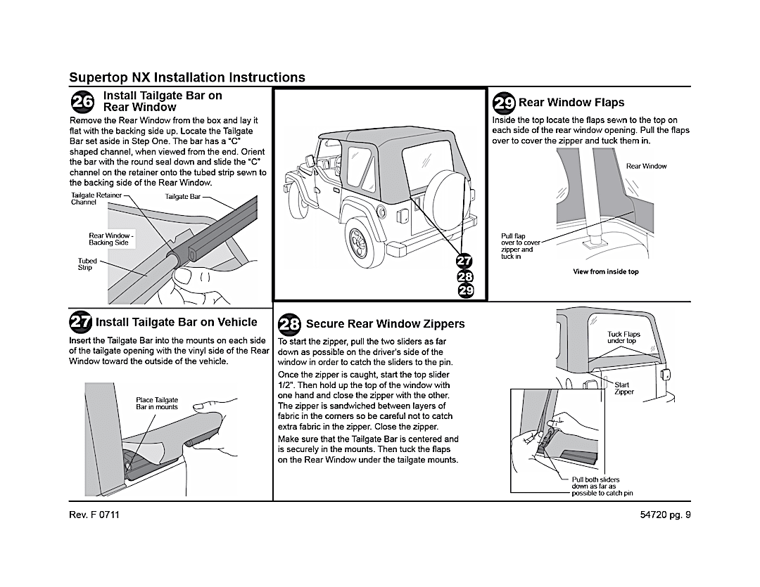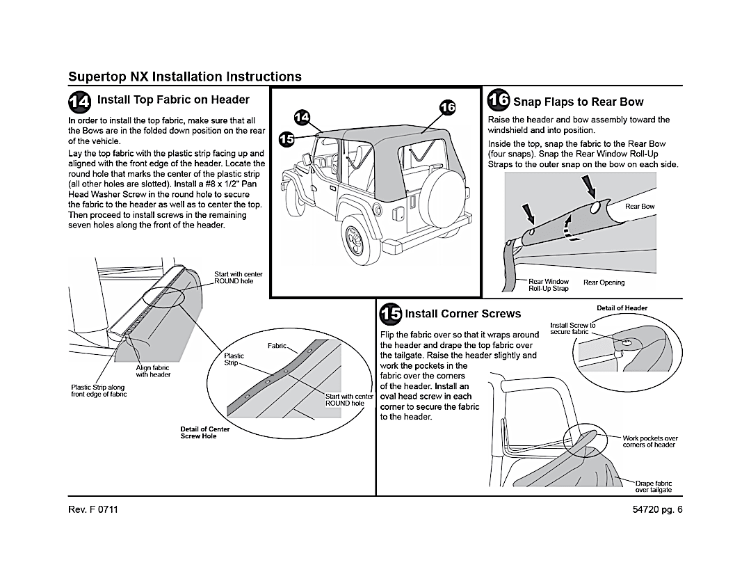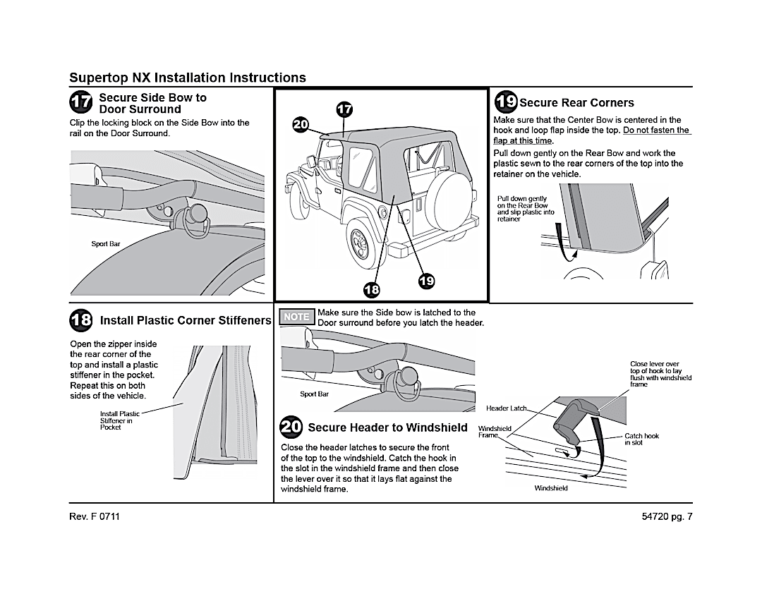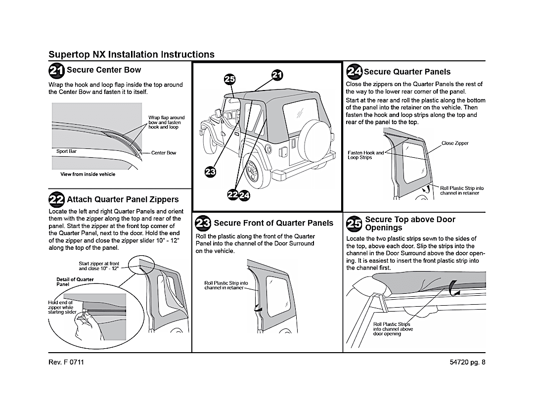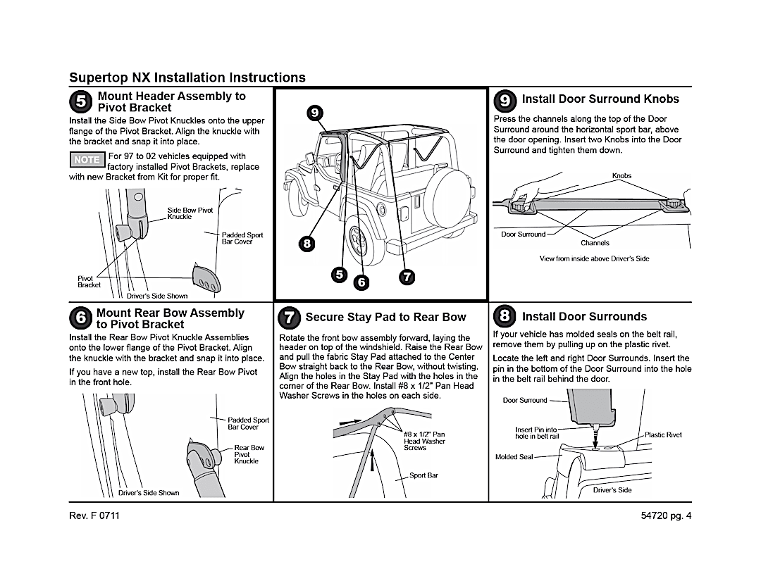 Supertop Complete Top With OEM Style Hardware. Bestop’s Factory Style Soft top complete with factory style door surrounds, factory style windshield channel, sailcloth fabric, and tinted windows. PLUS, a Top Arch to support the fabric, quick release bow knuckles for tool less top removal, and a new adjustable plate to maintain top tautness. High grade premium fabric. High Strength steel and OEM composite plastic hardware. Fold back sunroof feature, standard, except on YJ model. Multiple door kits available. Full Soft Top kit available for TJD applications. Two Year Warranty.