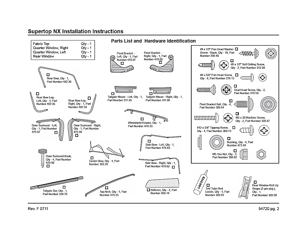- Complete Top With OEM Style Hardware