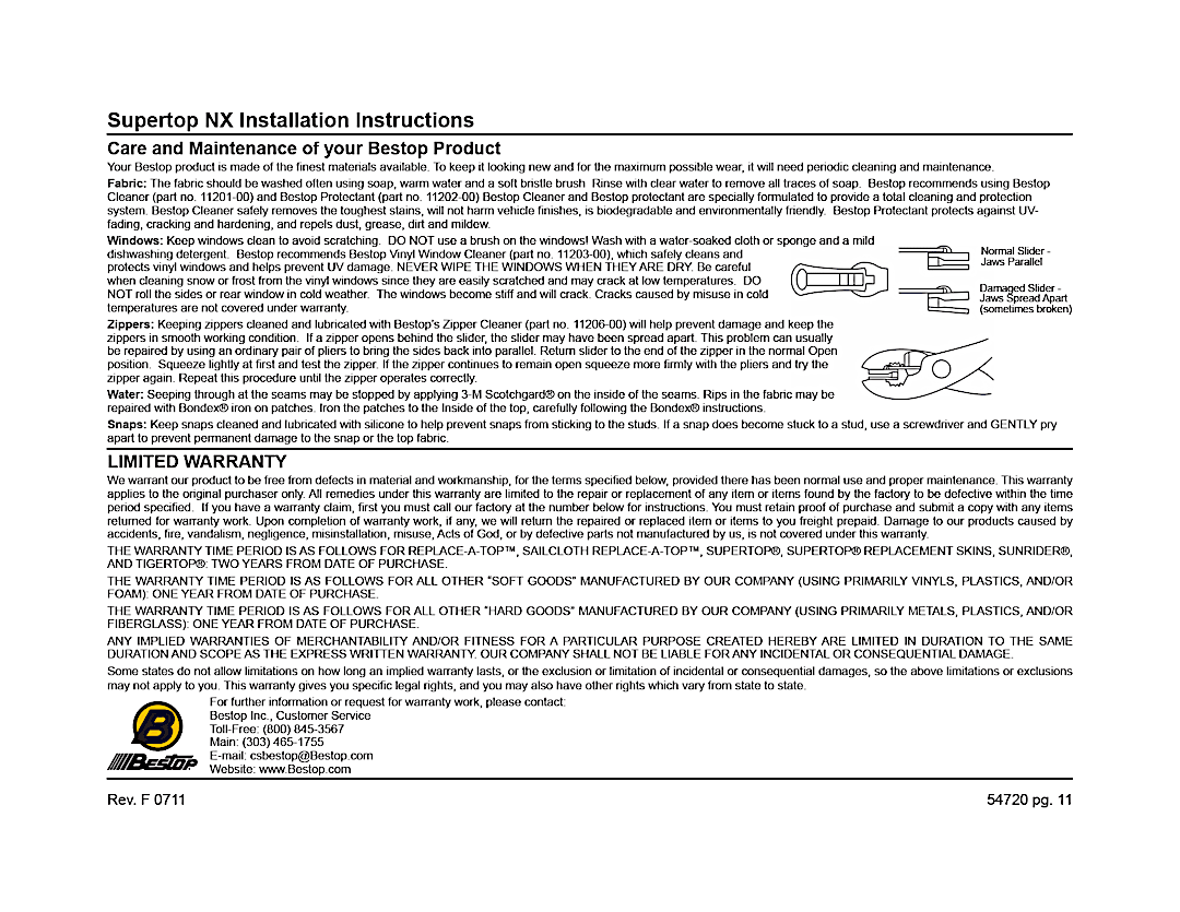 2-year Bestop limited warranty |