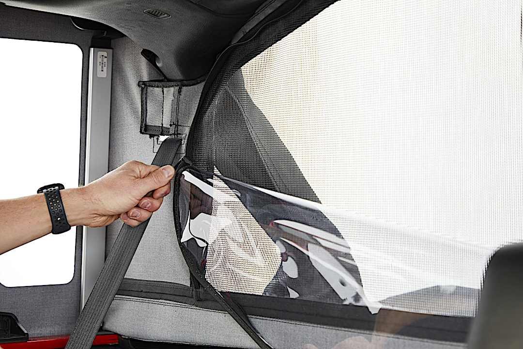 - Rear window has zipper for additional air flow