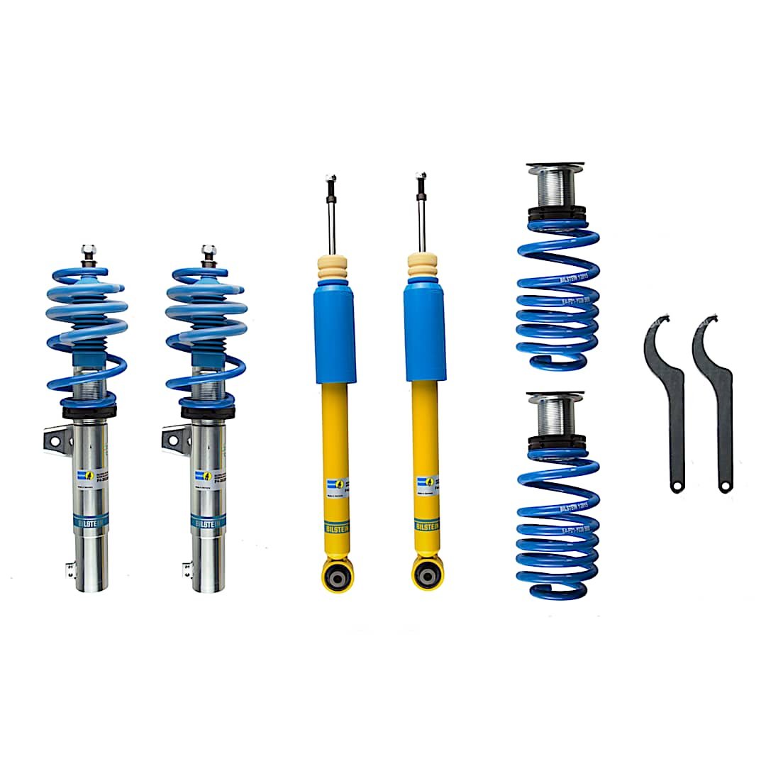 Bilstein’s B14 PSS coil over kits feature threaded sections that allow you to raise or lower your vehicle within a 20mm range, giving a wide range of suspension tuning flexibility. Developed and fine-tuned to withstand rigorous track conditions, the B14 PSS coil over kits come with a set of precisely-calibrated springs to optimize ride and handling. Bilstein has set the standard in shock absorber and suspension components since they invented the first monotube gas-pressure shock in the 1950s.