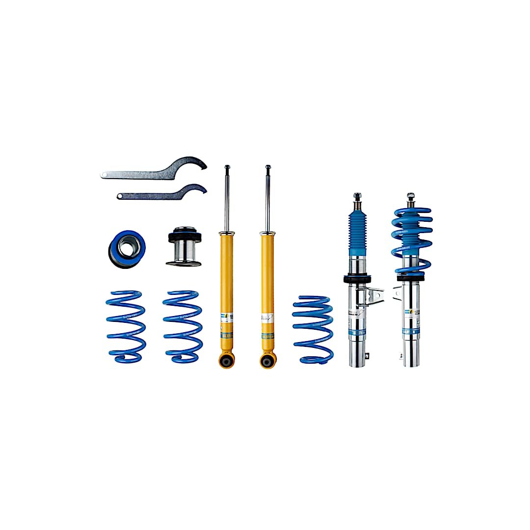Bilstein’s B14 PSS coil over kits feature threaded sections that allow you to raise or lower your vehicle within a 20mm range, giving a wide range of suspension tuning flexibility. Developed and fine-tuned to withstand rigorous track conditions, the B14 PSS coil over kits come with a set of precisely-calibrated springs to optimize ride and handling. Bilstein has set the standard in shock absorber and suspension components since they invented the first monotube gas-pressure shock in the 1950s.