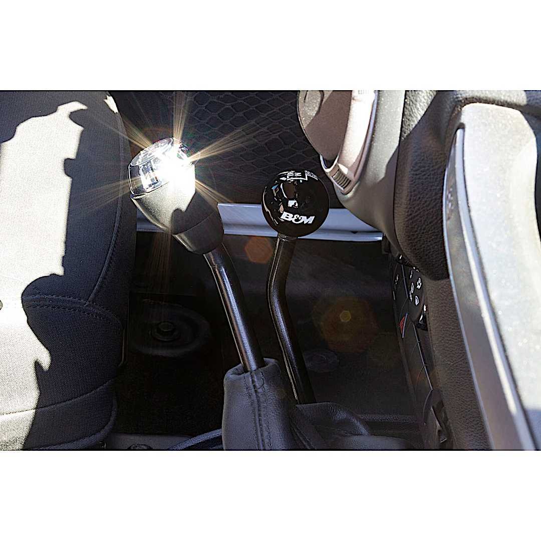 Introducing B&M’s new extended transfer case shift handle. This extended transfer case handle allows for easy access and operation while allowing shifting in and out of gear ranges without having to reach down and take your eyes off the road or trail. The extended length also provides additional leverage which reduces the effort required to shift into 2 and 4-wheel drive ranges. The shift handle assembly is manufactured from machined billet aluminum, a 4340 steel shift stick with durable e-coat finish and replaces the weaker plastic OEM factory unit. Also includes a black B&M logo shift knob for the shifting duties and is a very quick and easy direct fit-installation.