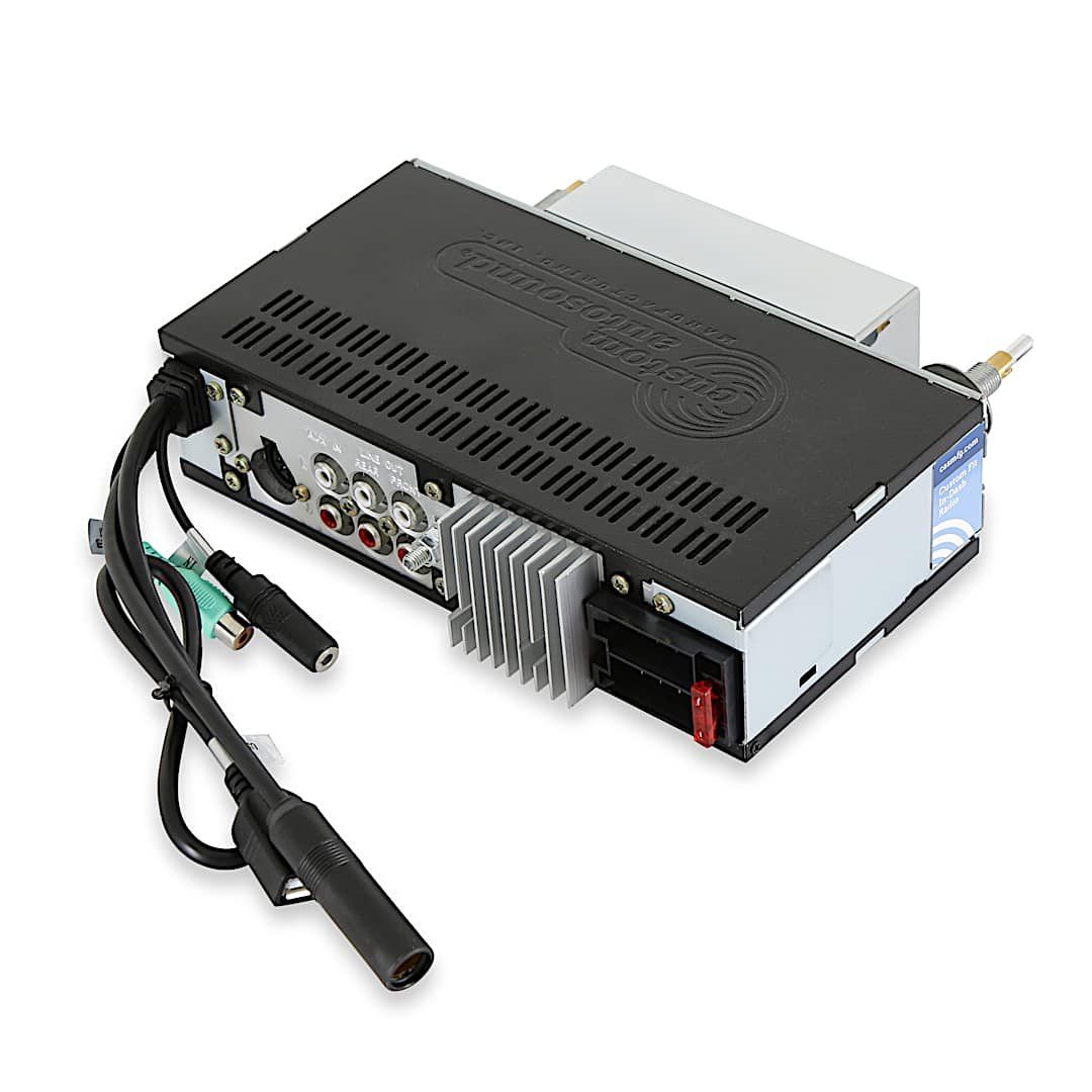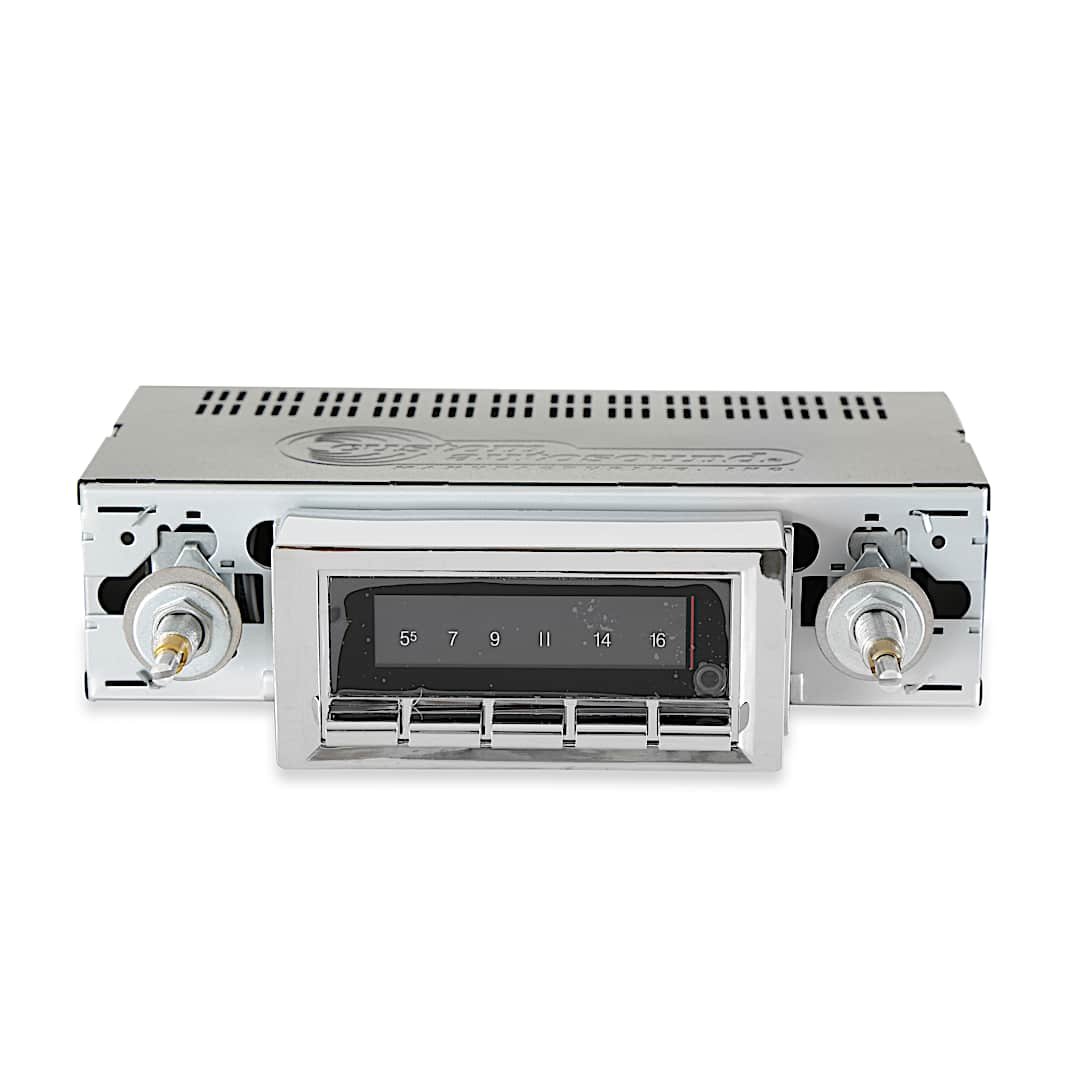 1967-72 Chevy Version ShownThis is the top-of-the-line radio featuring an AM/FM digital tuner, built-in mobile wireless connectivity, a USB port, two auxiliary inputs (3.5mm in front, two CH in rear), and the ability to add a single disc CD player. The mobile wireless capability allows you to listen to the radio, stream music from your phone, and talk hands-free without having to cut the dash.* AM/FM Stereo* 3.5mm Frt & 2 CH Aux Rear Input * 300 Watts * 4 Way Fader * Power Antenna Lead * 25 Pre-sets * Electronic Tuning & Volume * 5 CH RCA Pre-outs + Sub out * 7 Color LCD * CD Controller * Built-in mobile wireless connectivity* USB InputNote: Some features are disabled on 55-59 applications. Contact BROTHERS customer service for details. Not available for 1954-55.1 applications. Each radio is modified to fit each specific vehicle so the radio fits your dash right out of the box. No kits/bezels or jury rigging to get it to fit/look right in your vehicle.* AM-FM Stereo * 200 Watts * Alpha Numeric Display * Electronic Tuning and Volume Control * 4 way Fader * Digital Clock * 2 Channel RCA Auxiliary Input for Satellite / iPod etc. * 16 Pre-sets (12FM-4AM) * 4 Channel RCA Pre-outs * USA/Euro Tuner * Power Antenna Lead