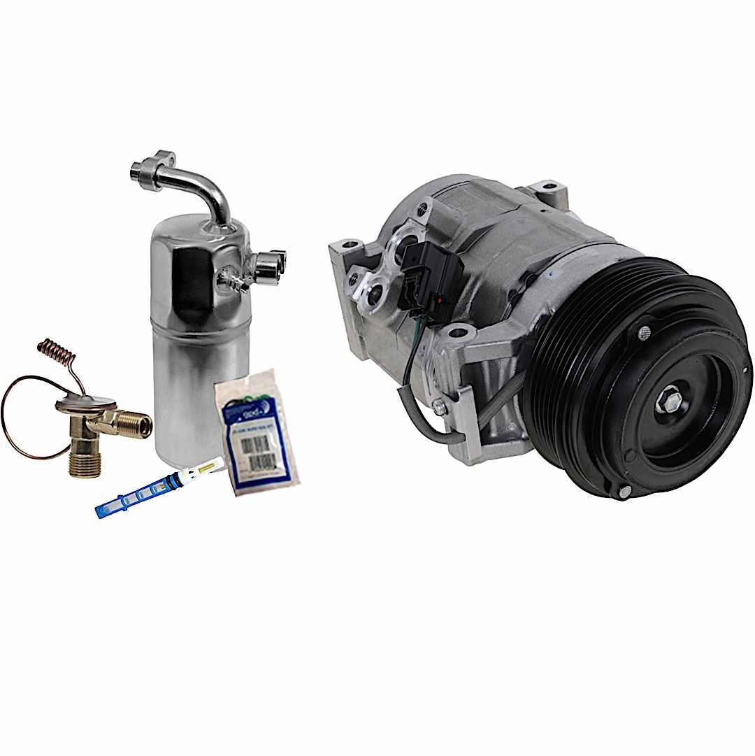 (1) A/C Compressor and (1) A/C Service Kit (A/C Expansion Valve ,A/C O-Ring and Gasket Seal Kit ,and Drier Desiccant Element) |