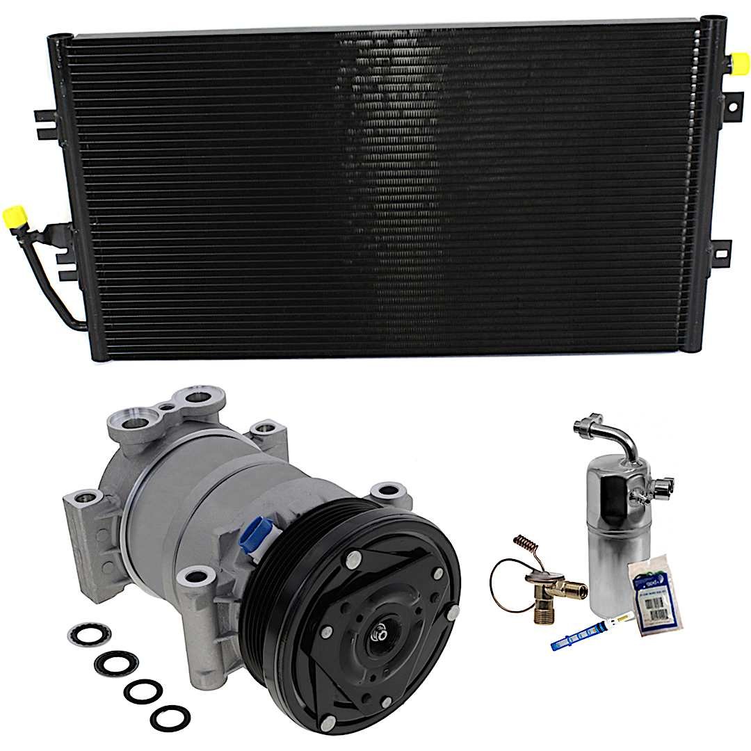 (1) A/C Compressor ,(1) A/C Condenser ,A/C Expansion Valve ,A/C Orifice Tube ,and (1) A/C Service Kit (A/C Accumulator ,and A/C O-Ring and Gasket Seal Kit) |