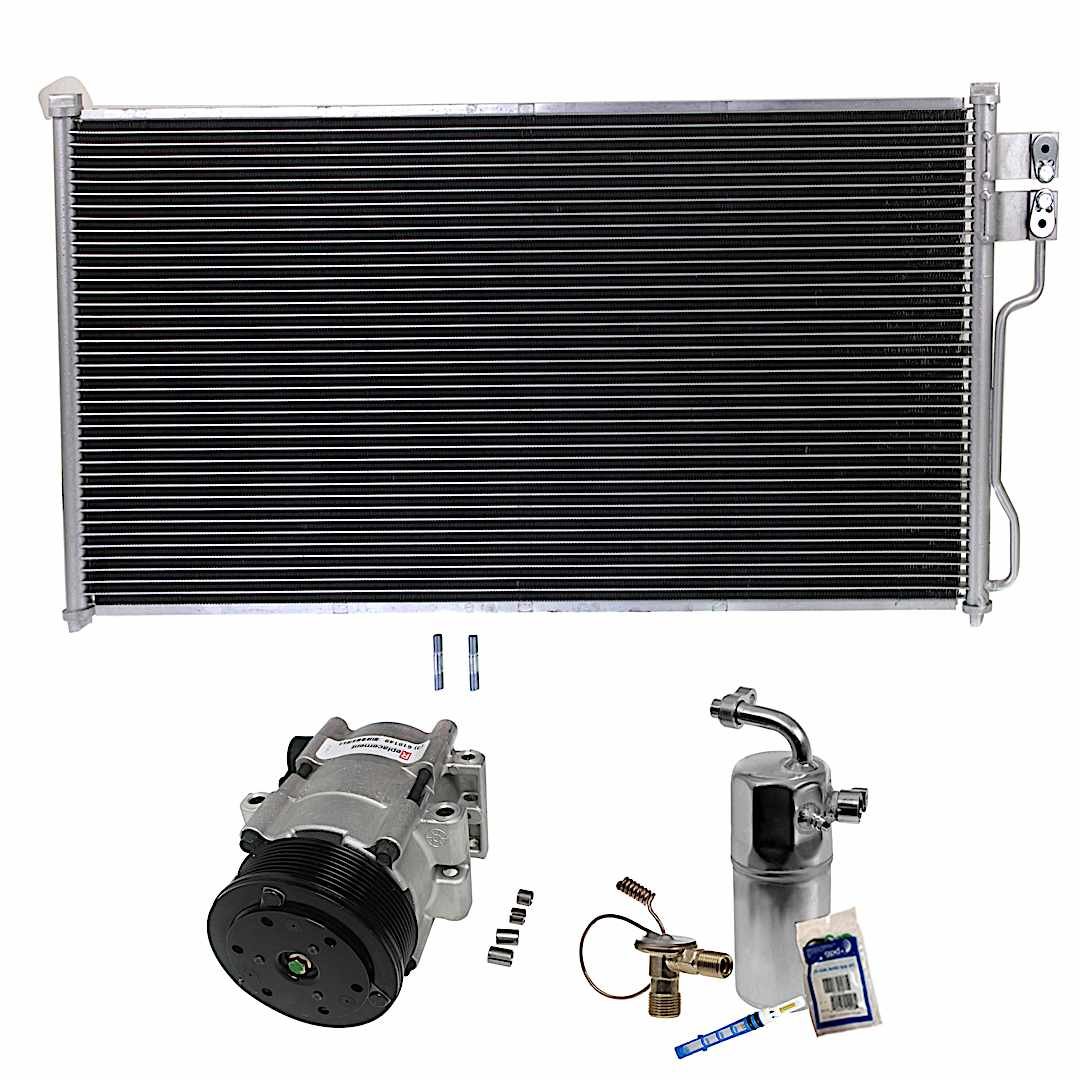 (1) A/C Compressor ,(1) A/C Condenser ,A/C Orifice Tube ,and (1) A/C Service Kit (A/C Accumulator ,and A/C O-Ring and Gasket Seal Kit) |
