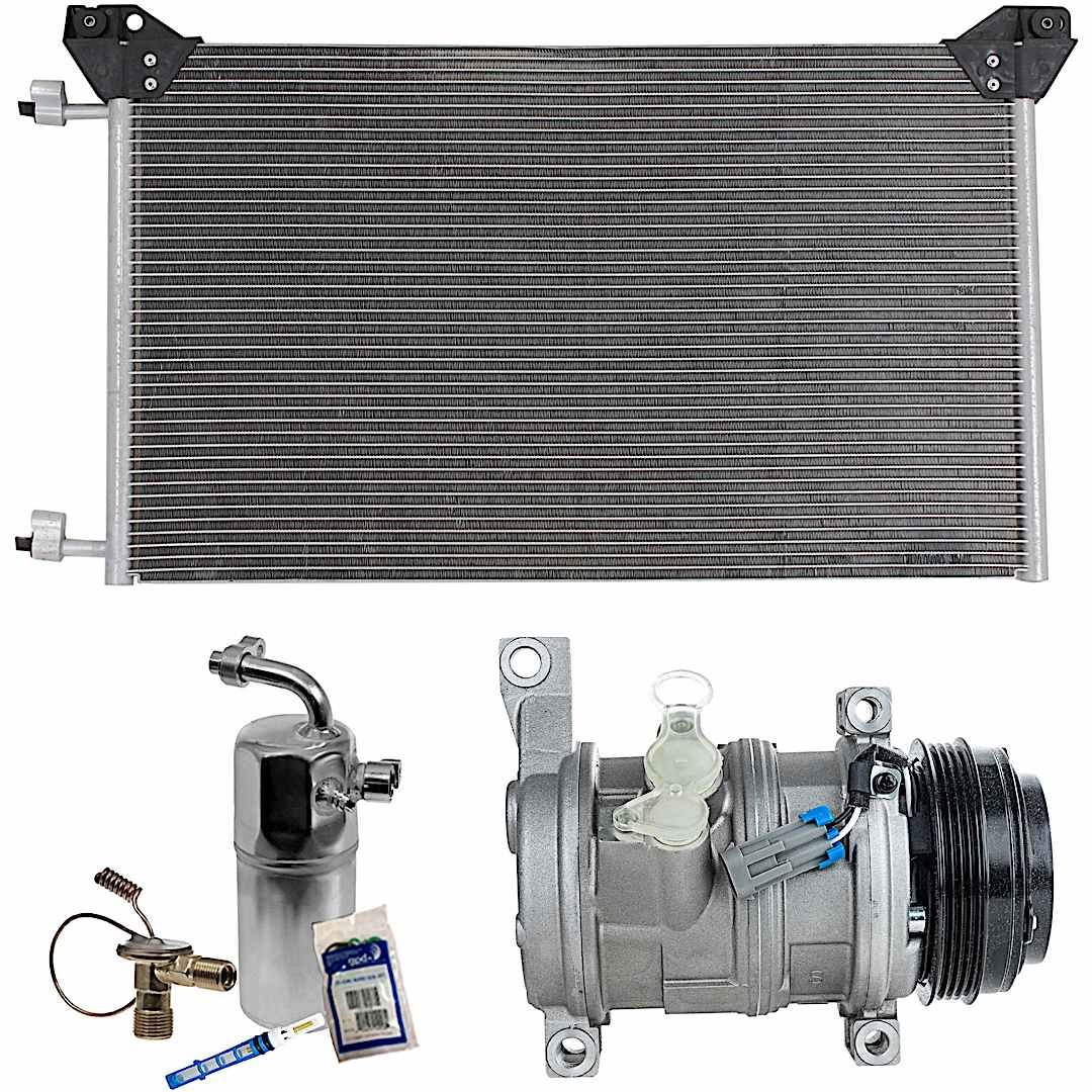 (1) A/C Compressor ,(1) A/C Condenser ,A/C Expansion Valve ,A/C Orifice Tube ,and (1) A/C Service Kit (A/C Accumulator ,and A/C O-Ring and Gasket Seal Kit) |