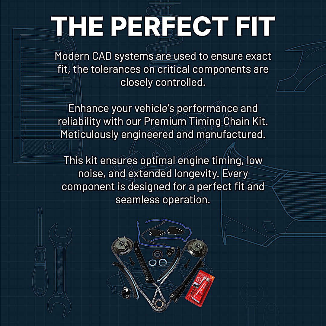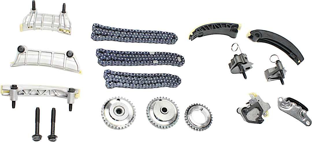 - Comes with necessary items such as camshaft sprockets, crankshaft sprockets, timing chains, tensioners, and guides.