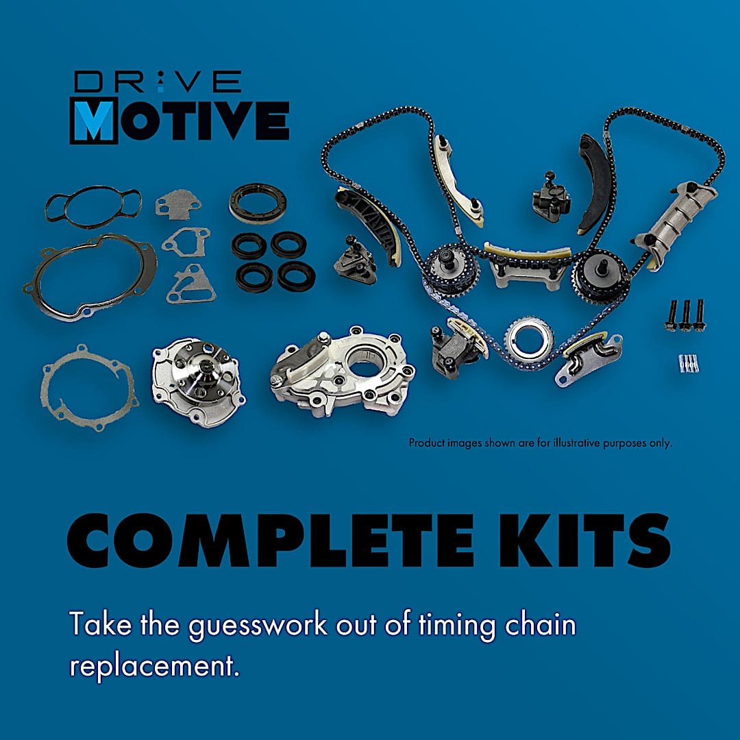 Whether you’re rebuilding an engine or replacing your timing chain preemptively, DriveMotivetiming chain kits offer OE-level performance and smooth quiet operation. Let DriveMotivehelp you tackle timing chain replacementswith complete kits that help take the guesswork out of your project. Each component in the kit is durability tested for years of reliable operation.