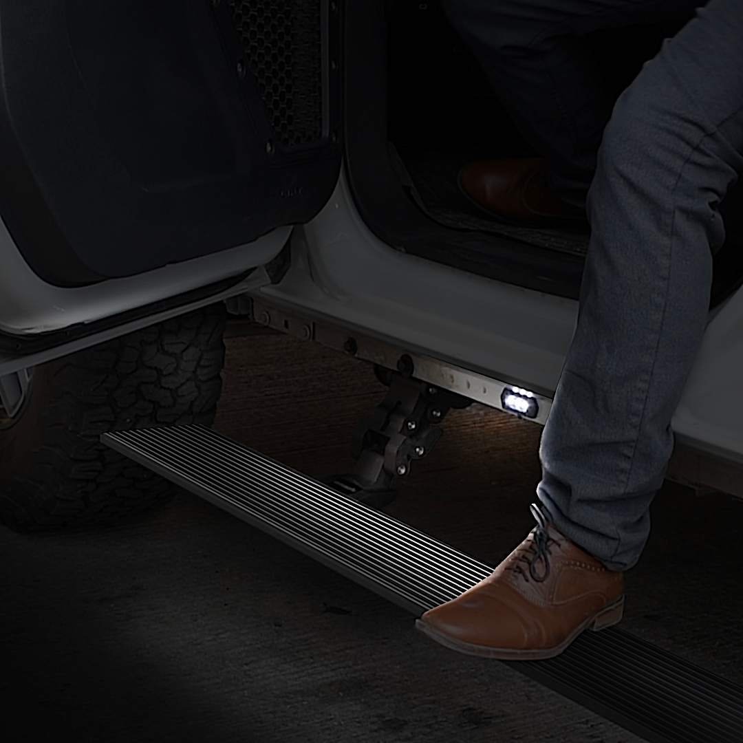 Step in and out of your ride with ease using Go Rhino’s E-BOARD E1 Electric Running Boards. This kit features automatic electric side step that immediately deploys and retracts when opening and closing vehicle doors.