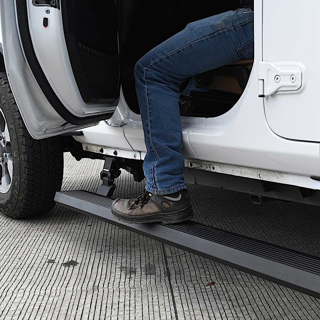 Step in and out of your ride with ease using Go Rhino’s E-BOARD E1 Electric Running Boards. This kit features automatic electric side step that immediately deploys and retracts when opening and closing vehicle doors.