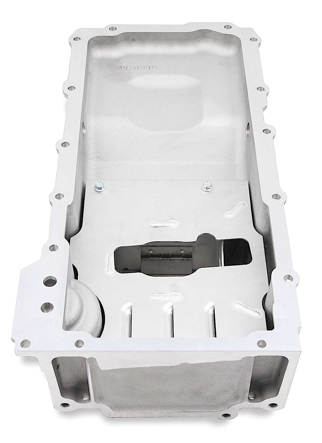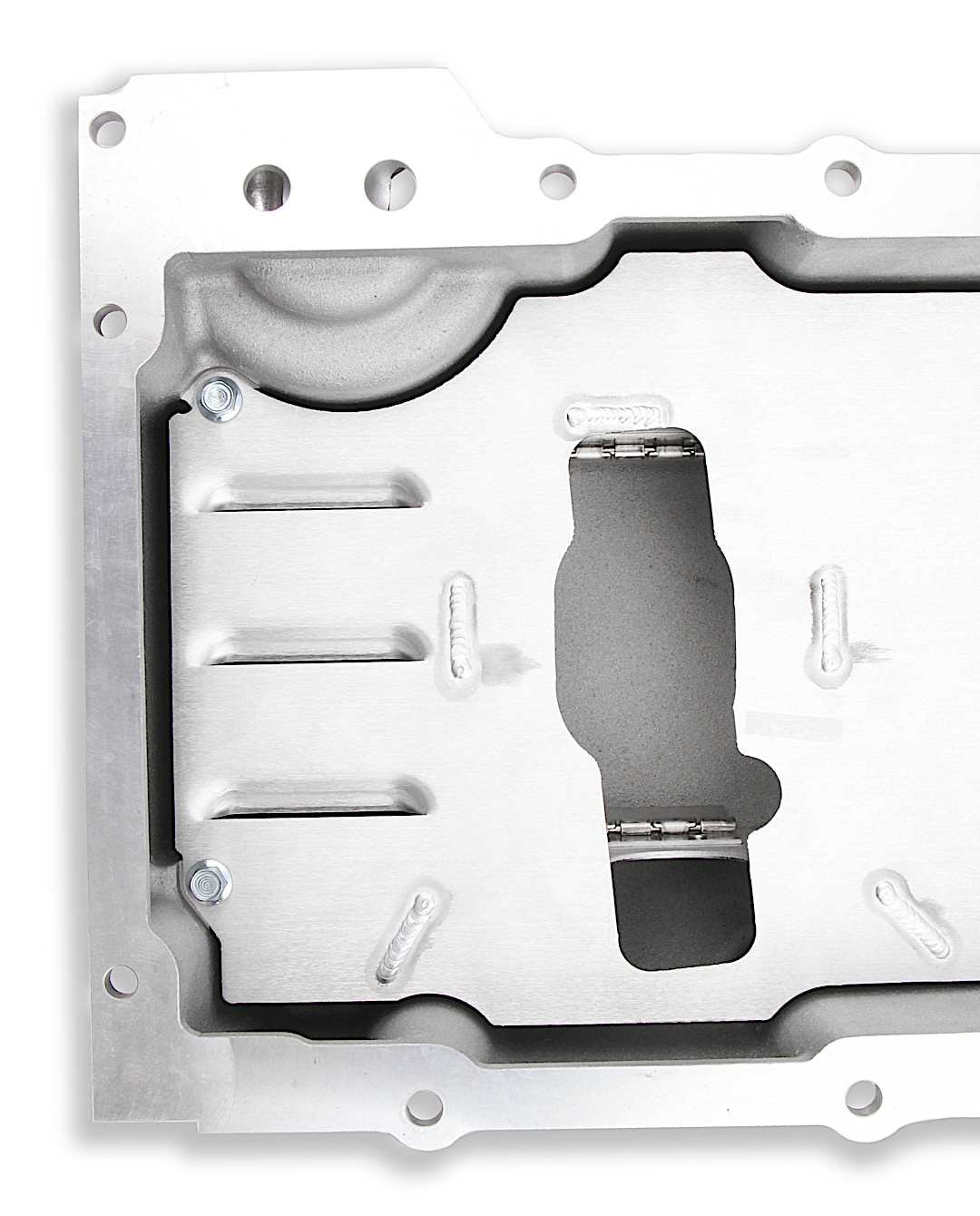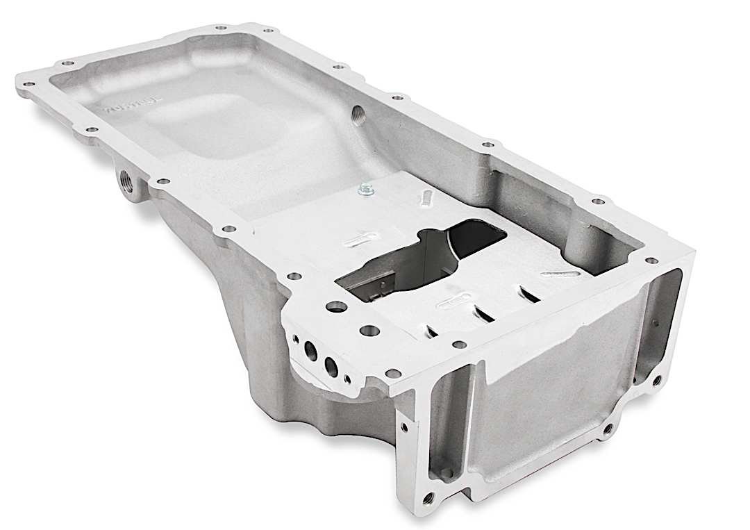 Holley’s oil pan baffle is designed to maintain proper oil level at the oil pump pick-up during vehicle accelerations, both lateral and linear. This prevents the loss of engine oil pressure during maximum cornering in a high-performance touring or road-racing, as well as under hard acceleration in drag racing vehicles.