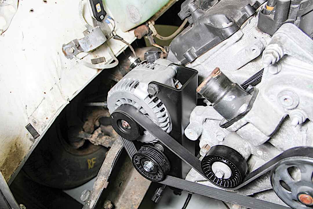 - Mounts the Alternator low & Inward for Added Clearance in Gen III Hemi Swaps