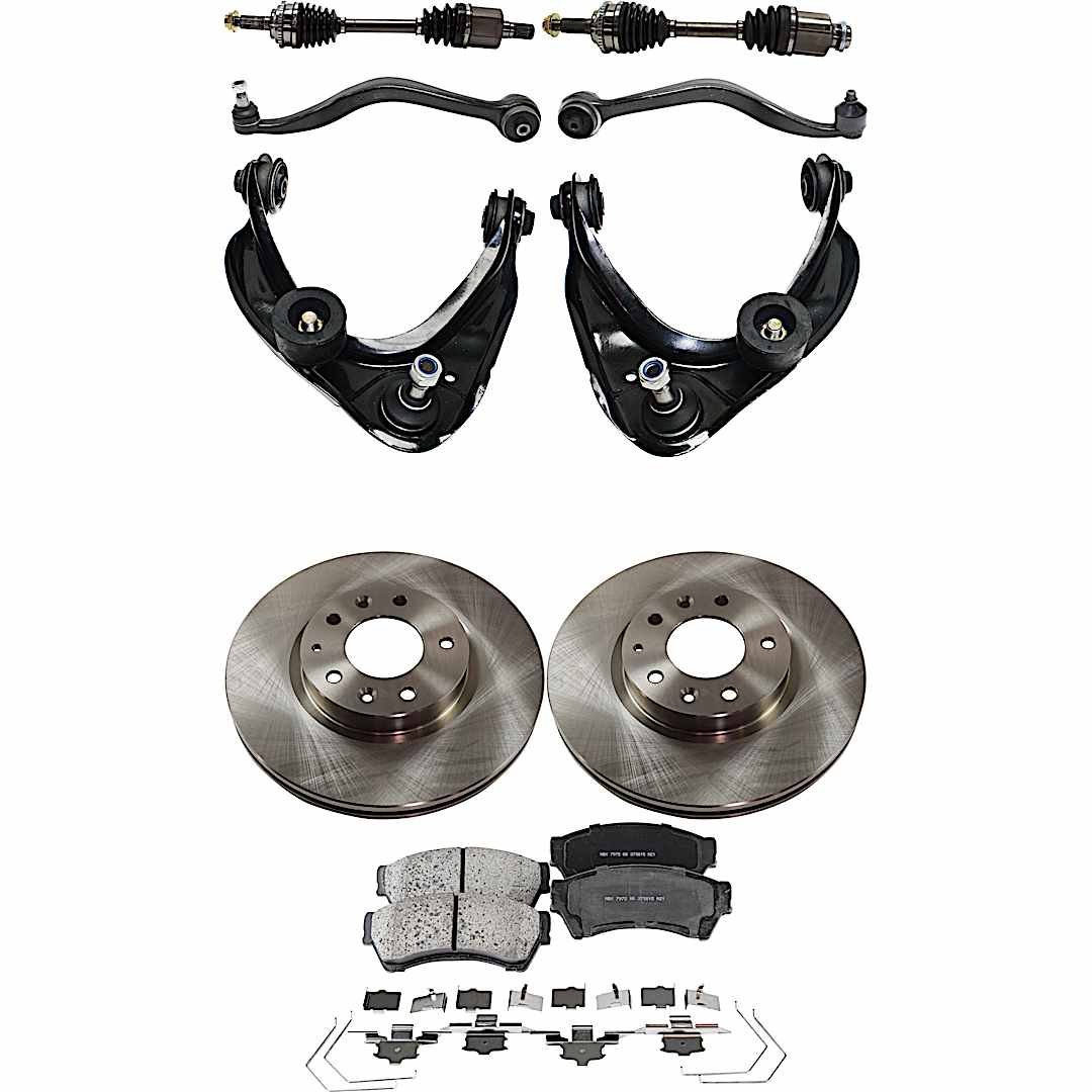 JC Whitney 10-Piece Kit Front Axle Assembly with Brake Discs, Brake Pad Sets, and Control Arms, All Wheel Drive, 6-Speed Automatic Transmission