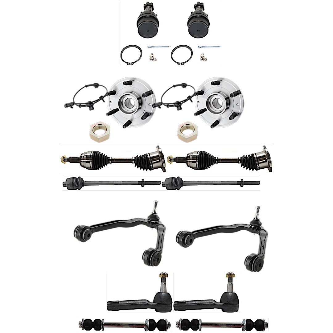 JC Whitney 14-Piece Kit Front, Driver and Passenger Side Axle Assembly, Includes (2) Axle Assembly, (2) Ball Joint, (2) Control Arm, (2) Sway Bar Link, (4) Tie Rod End, and (2) Wheel Hub