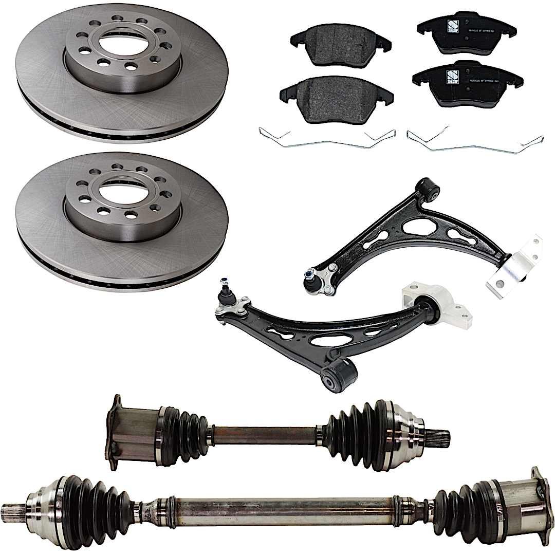 JC Whitney 8-Piece Kit Front Axle Assembly with Brake Discs, Brake Pad Set, and Control Arms, Diesel, Front Wheel Drive, Automatic Dual Clutch Transmission